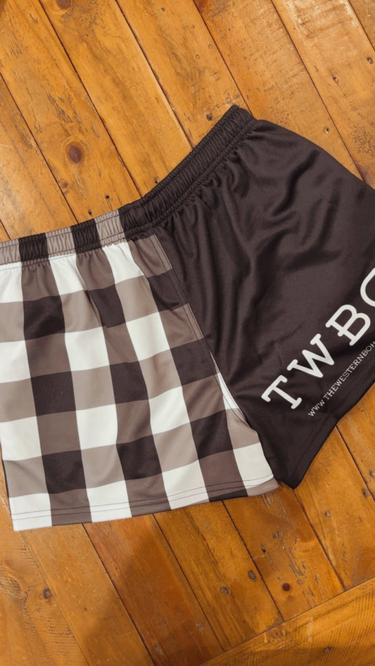 3RD PRE ORDER OPEN Black + White Gingham Footy Shorts